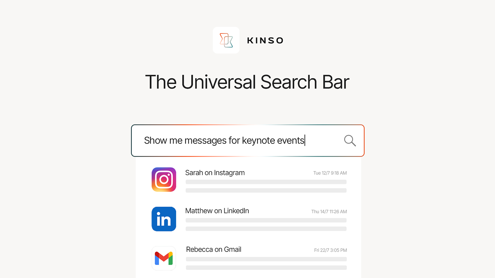 In that network, a remark about contract terms in chat is linked to the original proposal in email and to the meeting where those terms were discussed. A line about “looking for a senior engineer” connects to a later note from a recruiter and to a calendar entry about headcount planning. A casual comment about runway links to investor updates, internal forecasts, and board prep. Instead of separate histories, Kinso builds continuous threads that span channels.